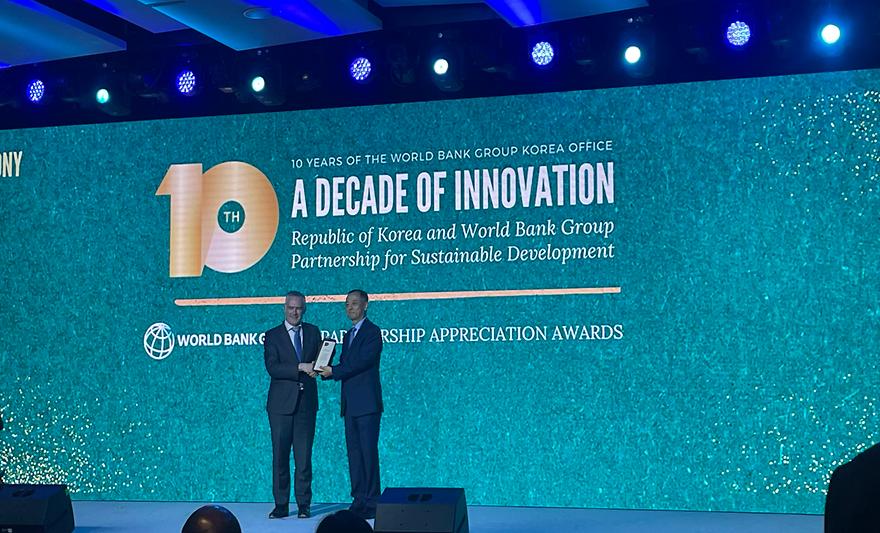 The Ajou University Graduate School of International Studies was awarded an appreciation plaque by the World Bank Korea Office at the latter's 10th anniversary celebration in recognition of the former's contributions to the energy industry, specifically its running of the master's degree program under the Korea International Cooperation Agency's (KOICA) energy policy.The World Bank Korea Office held its 10th anniversary celebration at the Fairmont Ambassador Seoul on May 24, where it shared its achievements and future plans. A number of cooperating institutions were honored with appreciation plaques at the event.The Ajou University Graduate School of International Studies received an appreciation plaque for its successful partnership with the World Bank Korea Office and other agencies in the field of energy. The graduate school has been operating a master's degree program under KOICA's energy policy, which was developed by KOICA to produce experts on the energy policy of developing countries. The master's degree program has been offered at the Ajou University Graduate School of International Studies since 2017 with annual funding of KRW 900 million. At present, there are 20 students from 14 countries enrolled in the program.The program includes such components as energy independence, energy industry development, green growth, climate change response, and energy education and training. Students who complete the 17-month program graduate with a master’s in energy science policy.The students enrolled in the program are government employees involved in the field of energy in their respective countries who will likely return to their posts upon graduation to apply their newly acquired energy expertise.Department Chair Jung Yonghun of the Ajou University Graduate School of International Studies expressed his gratitude to "all members of the Graduate School of International Studies and everyone who made the running of the program possible," adding that "the best of efforts will be made to improve Ajou University, now celebrating its 50th anniversary, as well as the Graduate School of International Studies and the programs offered."