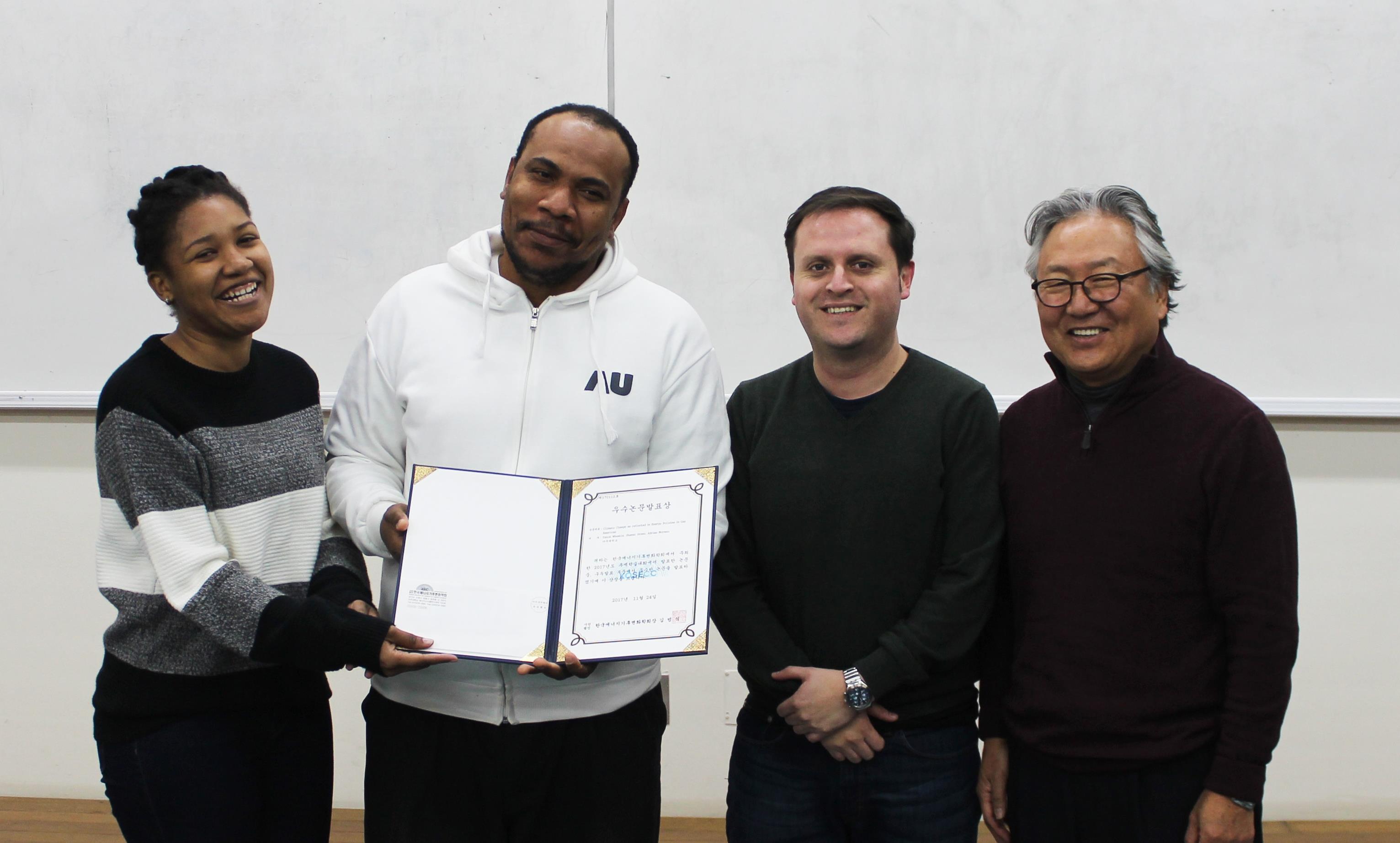 우리 학교 대학원 지식정보공학과에 재학 중인 손동열 학생(공학석사과정 IoT 전공)이 '2017 한국정보통신설비학회 학술대회'에서 우수 논문상을 수상했다.손동열 학생은 김지민(대학원 컴퓨터공학과, 공학박사과정), 지청민(대학원 컴퓨터공학과, 공학박사과정), 홍만표 교수(사이버보안학과)와 함께 진행한 영상데이터 보안에 대한 연구로 우수 논문상 수상의 영예를 안았다. 수상한 논문의 제목은 이다. 관련 연구와 본 논문에서 제안하는 방법을 각각 구현하여, 영상의 비트레이트 오버헤드가 감소하는 객관적인 비교 실험 과정과 결과를 높게 평가 받았다.손동열 학생은 지식정보공학과에서 석사과정 3~4학기에 진행한 , , 에서 사이버보안학과 김강석 교수, 김재훈 교수, 김기형 교수, 홍만표 교수의 지도를 받아 위의 연구를 진행했다. 우리 학교 대학원 지식정보공학과는 한국정보보호진흥원(KISA)과 한국정보통신기술진흥센터(IITP)의 SW 고용계약형 석사과정으로 이와 같은 커리큘럼으로 교육한다. 학생들과 여러 기업들이 산학 컨소시엄을 구성해 인턴십을 병행하며 교수들의 논문 지도를 통해 학생들이 자기주도적인 연구를 수행하고 지도교수와 대학원생, 기업이 하나의 구성체가 되어 함께 체계적이고 실용적인 연구를 진행한다.한국정보통신설비학회 학술대회는 KT와 국방소프트웨어산학연합회가 주관하여 , 등을 주제로 개최됐다. 행사는 올 8월31일부터 9월2일까지 대명 델피노 리조트에서 열렸다.
