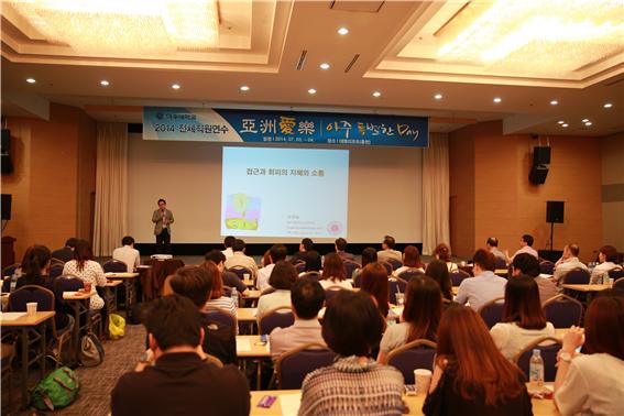 ‘아주대학교 2014 전체직원연수’가 지난 3일부터 1박2일 간의 일정으로 진행됐다. 강원도 홍천 대명리조트에서 열린 직원연수에는 우리 학교 직원과 보직 교수, 법인 사무처 직원 등 250여명이 참석했다. 이날 행사는 ▲장기 근속자 포상 ▲총장 말씀 ▲ 심리학과 김경일 교수 특강 ▲ 김문식 전 보건대학원장 특강 등으로 구성됐다. 10년·20년·30년 근속자를 대상으로 하는 장기 근속자 포상은 이명희 학술정보팀장을 비롯한 24명에게 주어졌다. 명단은 아래와 같다. ◆30년 근속: 권용금, 권혁표, 오원근, 이명희, 정정문, 최희자 ◆20년 근속: 김승권, 박재홍, 승홍배, 엄일중, 오상탁, 윤혜정, 인정숙, 장영수, 조경숙 ◆10년 근속: 노동현, 박민경, 안영식, 오은애, 우용재, 이윤정, 최정영, 최진구, 황원복 한편 안재환 총장은 산학협력선도대학육성사업(LINC) 선정에 기여한 공로로 산학협력단의 임군진 과장을 표창했다. 안재환 총장은 인사말을 통해 “여러분의 노고 덕택에 많은 어려움 속에서도 우리 학교가 꾸준히 좋은 성과를 낼 수 있었다”며 “아주대가 ‘잘 가르치는 대학’이라는 명성을 지켜갈 수 있도록 앞으로도 각자의 역할에 최선을 다해달라”고 말했다.