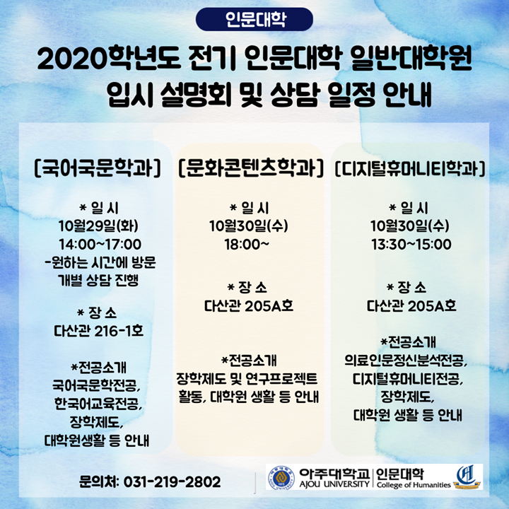 | 9011 | 행사 | 인문대학교학팀 | 2019-10-22 | ||