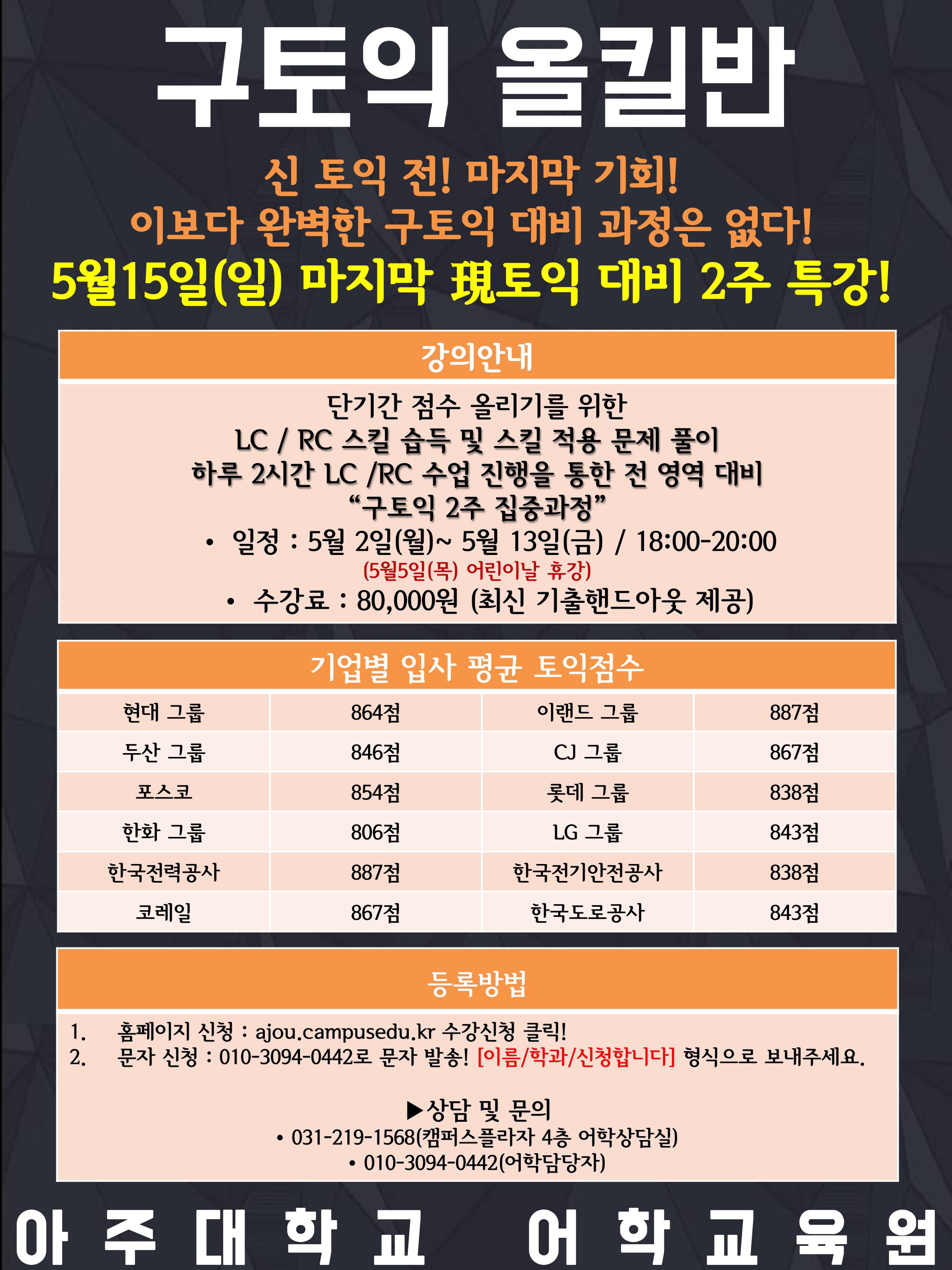 [어학교육원]구토익 올킬반! 5월 15일(일) 단기시험대비반