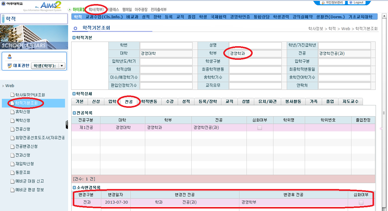 [학부] 2015-1학기 전과 확정 알림 및 학사안내