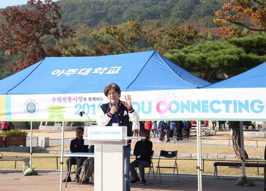 우리 학교가 지역사회와 연결된 문화를 공유하고 상생하기 위해 '아주 커넥팅데이(AJOU CONNECTING DAY)'를 마련했다. 11월 1일 열린 '아주 커넥팅데이'에는 교직원 320여명을 비롯해 박형주 총장과 염태영 수원시장, 수원남문9개 시장 상인회 회장단 등이 참석했다.