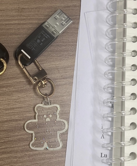 보라색 키링 달린 USB 를 찾습니다