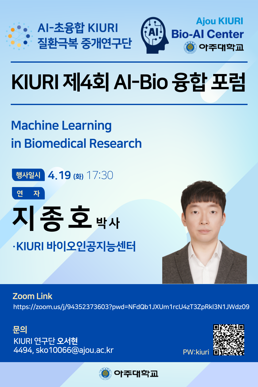 KIURI 제4회 AI-Bio 융합 Forum(4.19 화 17:30)