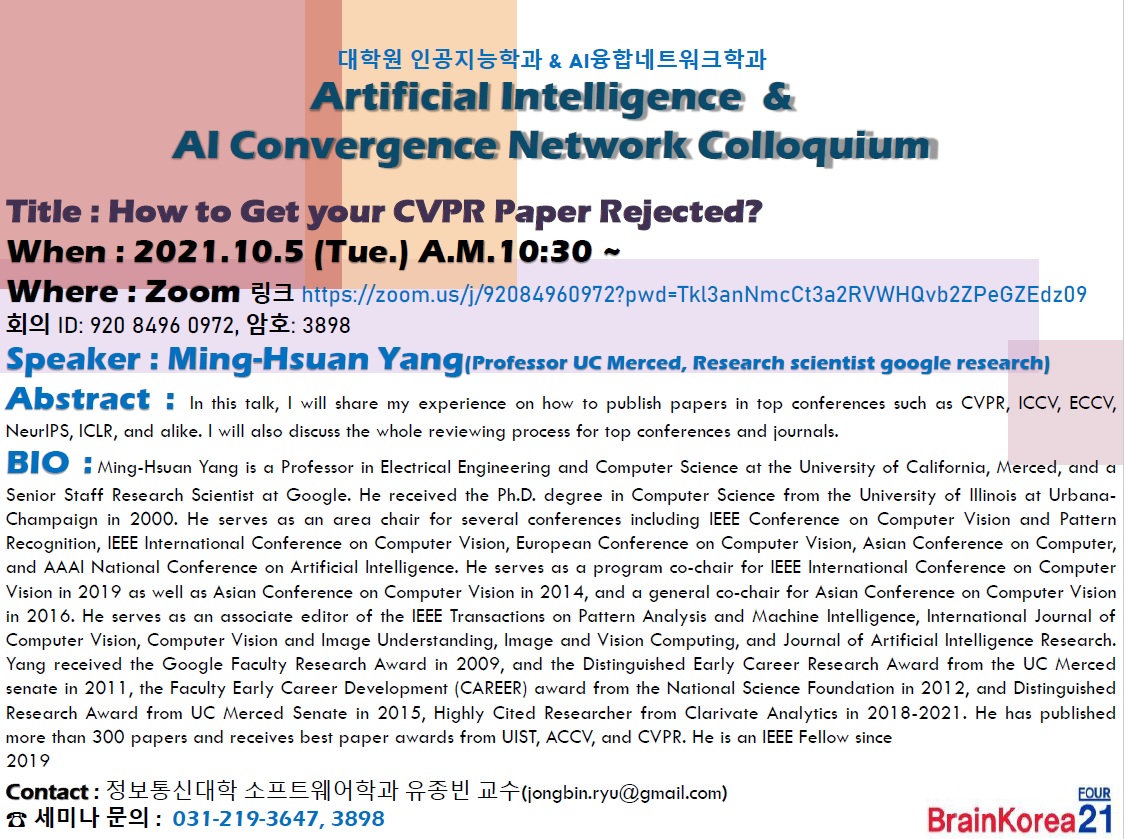 [2021.10.5. 화] Artificial Intelligence & AI Convergence Network Colloquium(10/5)